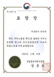 2020 국가품질상 산업부장관표장