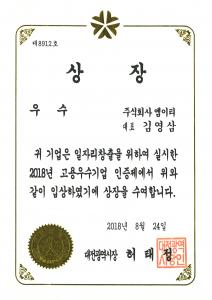 고용우수기업 우수상_2018
