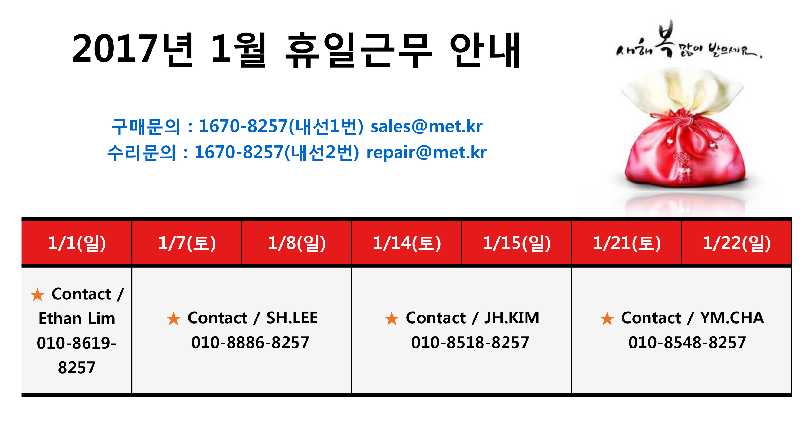 2017년 1월 주말 근무 안내