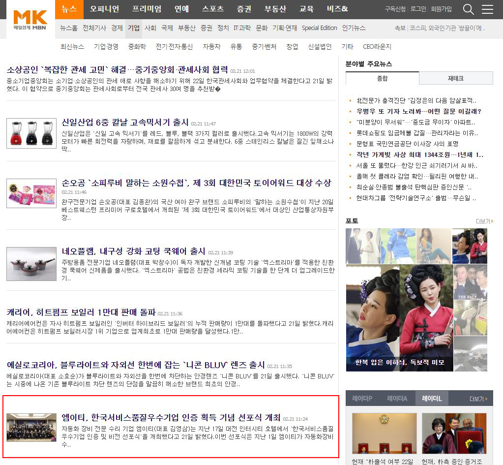 매일경제신문에 (주)엠이티 기사 보도 M.E.T 2017-02-23 11:04:17 view : 4555 매일경제신문에 저희 선포식 행사 관련 기사가 게재 되었습니다. 기사바로가기 목록 이전글머니투데이 신문에 (주)엠이티 기사 보도2017.02.24 다음글산업일보 메인에 (주)엠이티 기사 보도2017.02.22