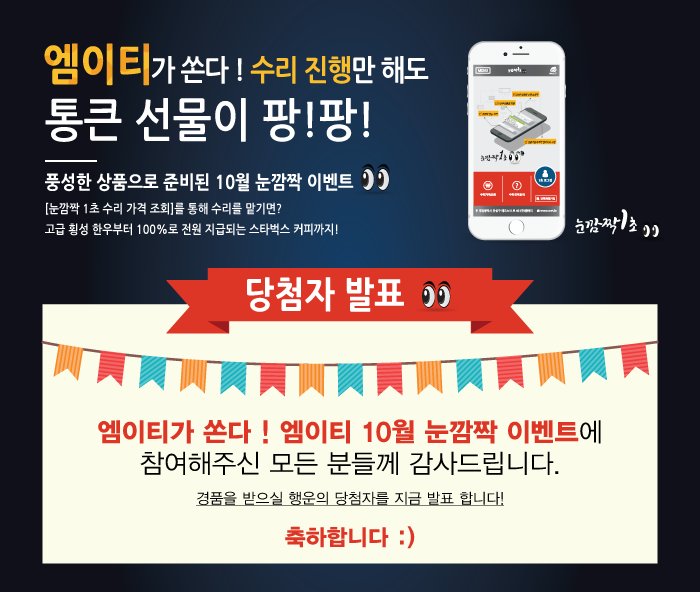 "엠이티가 쏜다 ! 엠이티 10월 눈깜짝 이벤트" 당첨자 발표 합니다.(두근두근)