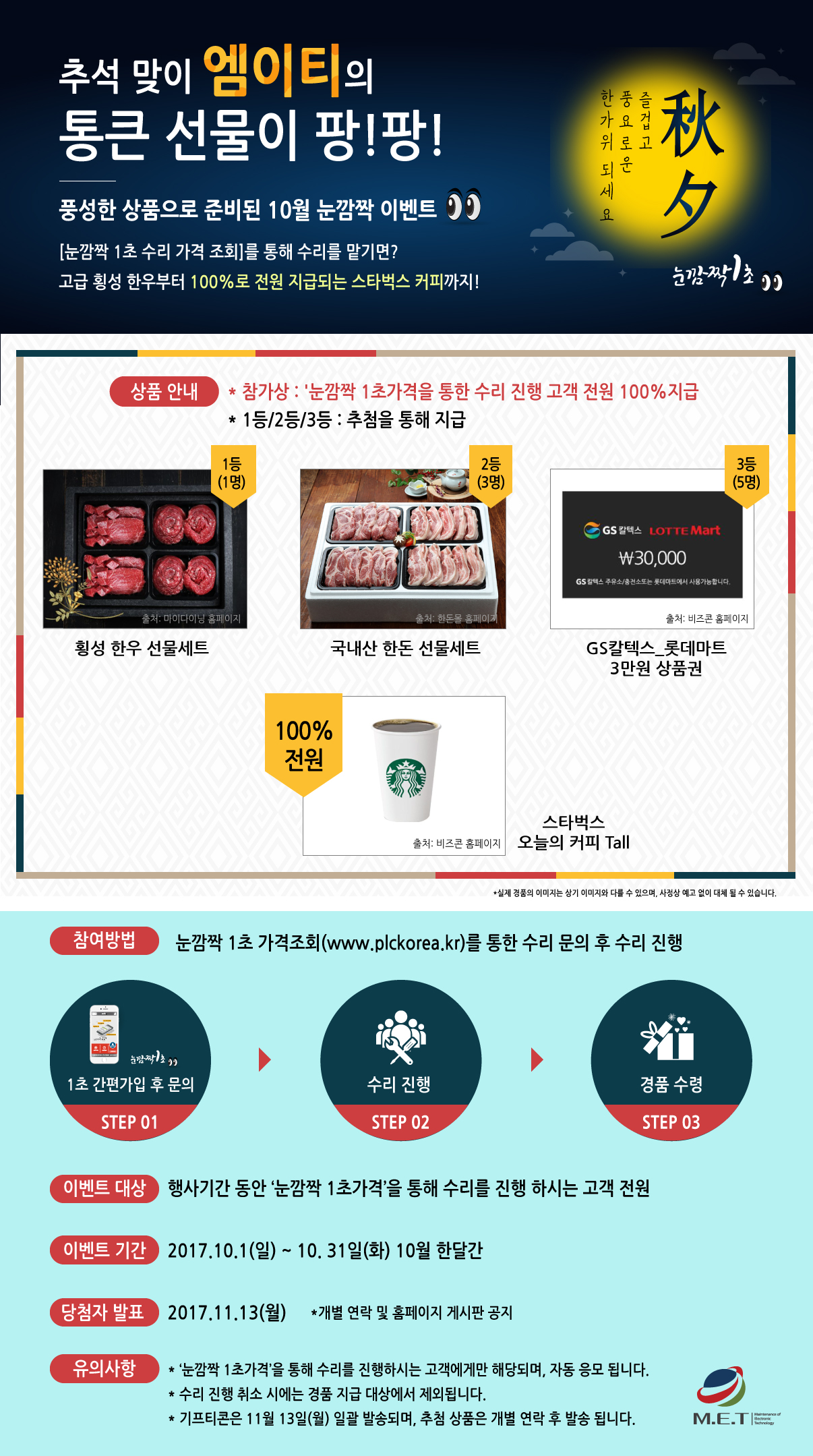 이벤트 기간 : 2017.10.1(일)~10.31(화) 10월 한달간